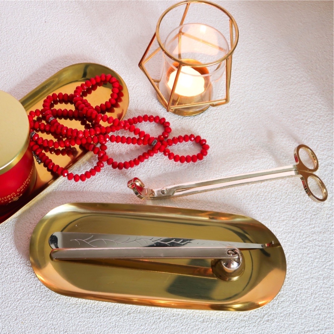 Add a gleaming accent to your space with our stylish gold metallic tray, crafted to elevate any setting. Designed with versatility in mind, it’s the perfect size to display your Smitten Candle Care Kit in either Gold or Rose Gold, keeping all your essentials organized in one elegant spot.