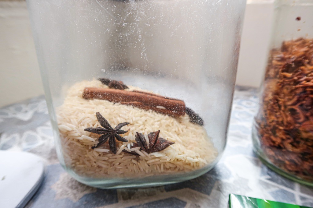 Before I get to the recipe, here’s a short tip on how to store rice. I learnt this trick from my former housemate. To ward off weevils and insects, place a few sticks of cinnamon or star anise in your rice container. This not only adds a subtle fragrance to your rice, it keeps the bugs at bay.